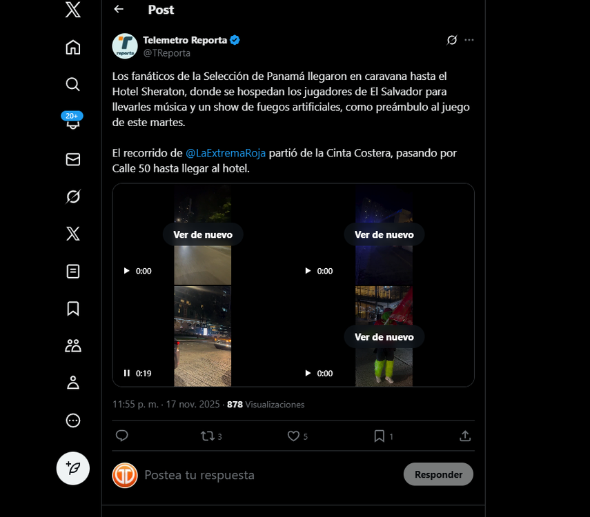 La caravana, bautizada por los aficionados como la “extrema roja”, salió desde la Cinta Costera y recorrió parte de la ciudad, incluyendo la vía Argentina y Calle 50, hasta llegar al hotel en horas de la noche.