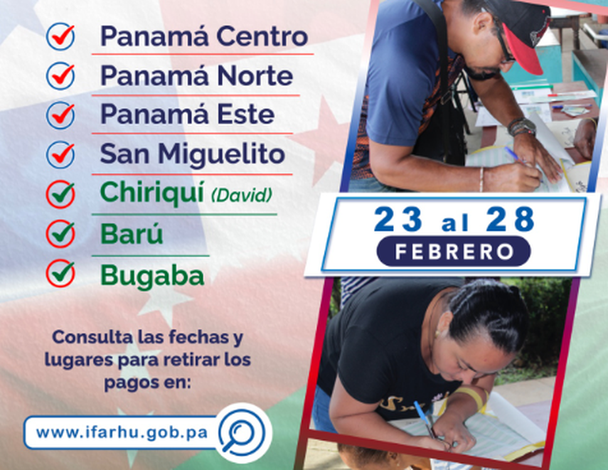 El Instituto para la Formación y Aprovechamiento de Recursos Humanos (IFARHU) anunció que del lunes 23 al sábado 28 de febrero se desarrollará una nueva jornada de pagos del programa PASE-U en distintos puntos del país.