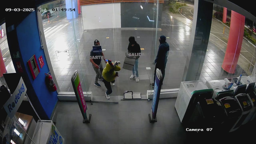 La alerta fue emitida por un agente de seguridad del establecimiento, quien reportó que cuatro sujetos encapuchados y vestidos de negro ingresaron al local tras forzar la puerta principal. Los individuos sustrajeron varios artículos y huyeron en un vehículo con la placa cubierta.