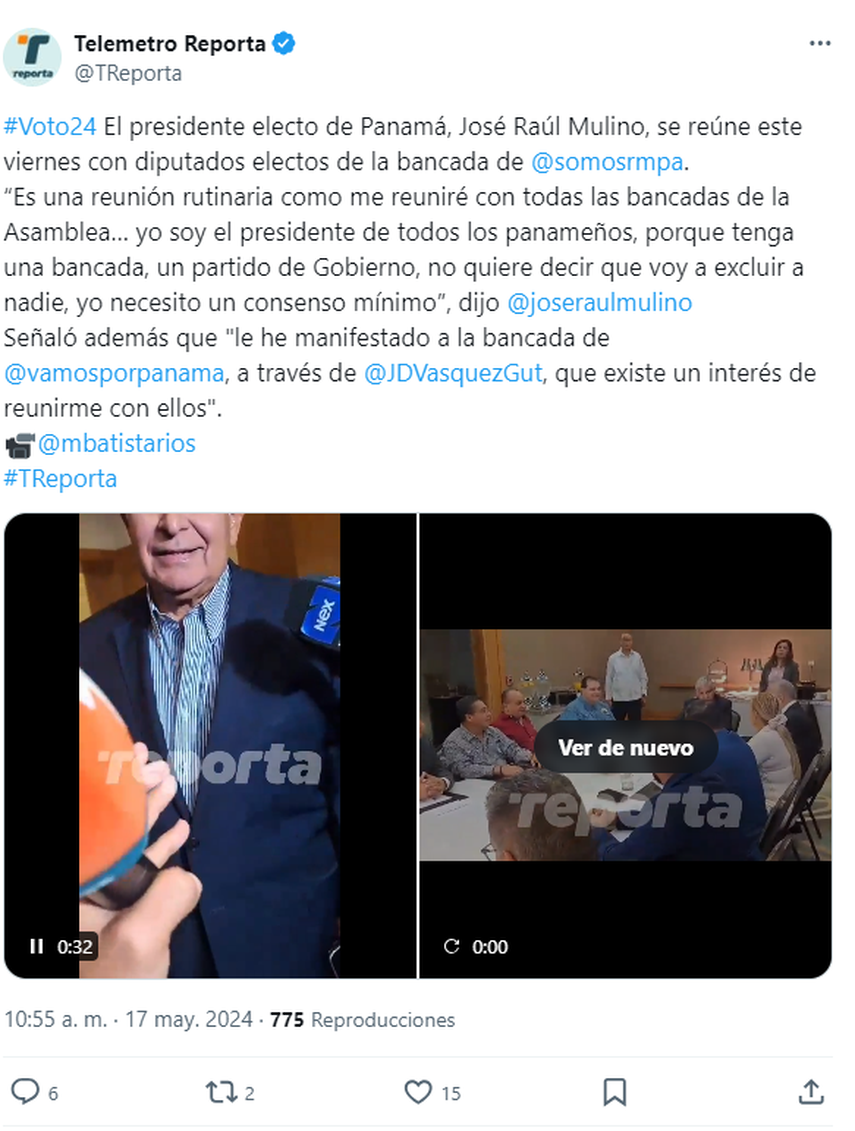 El presidente electo de Panamá, José Raúl Mulino, sostuvo una reunión este viernes con los diputados electos de la bancada de Realizando Metas. Mulino enfatizó que esta reunión es parte de su agenda rutinaria, ya que tiene la intención de reunirse con todas las bancadas de la Asamblea Nacional.