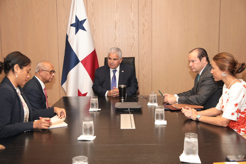El presidente de la República, José Raúl Mulino, sostuvo este jueves una reunión con el secretario general de la Organización de Estados Americanos (OEA), Albert Ramdin, en la que abordaron los principales retos geopolíticos del hemisferio y los esfuerzos del organismo por promover la paz, la prosperidad, la democracia y la no discriminación en la región.