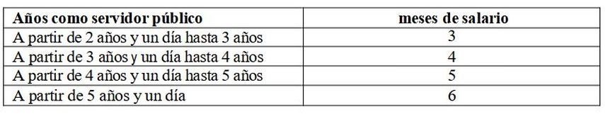La tabla establecida para calcular el monto del bono es la siguiente: