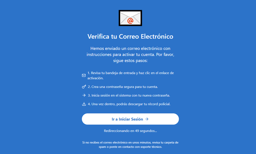 Una vez finalizado el proceso, recibirás el archivo original por correo. Este estará disponible para descarga durante 30 días. El documento certificará si tienes o no antecedentes penales.