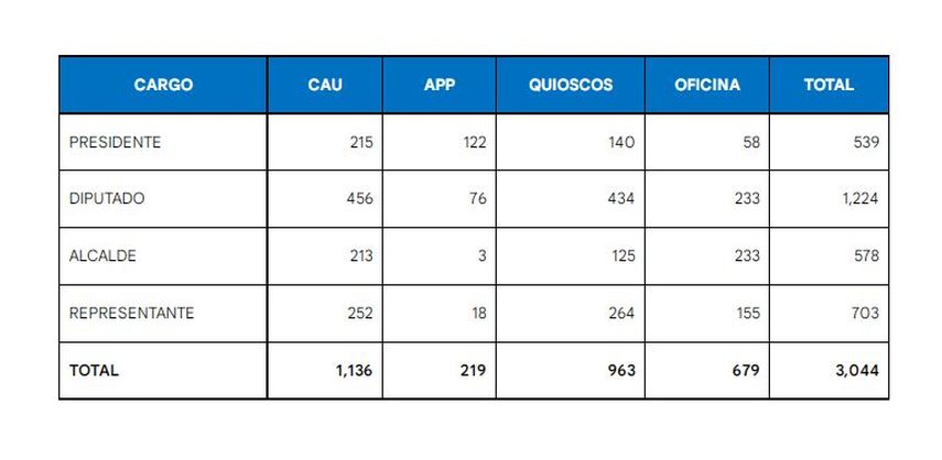 El Tribunal Electoral de Panamá informó que en las primeras 16 horas de este lunes 15 de agosto se registraron 3,044 firmas a través de las diferentes herramientas que esta entidad ha puesto a disposición de los ciudadanos para respaldar a los distintos precandidatos que aspiran a cargos por la libre postulación para la elección general del 2024.