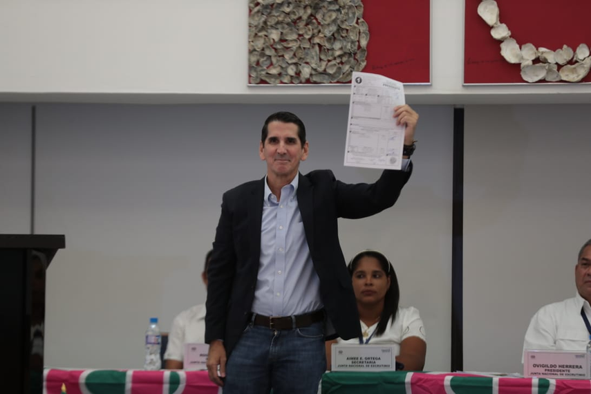 La Junta Nacional de Escrutinio del partido Cambio Democrático (CD) entregó a Rómulo Roux, el acta de proclamación que lo acredita como el candidato presidencial del colectivo; la entrega se da tras ganar las elecciones primarias realizadas el pasado domingo 9 de julio del 2023.
