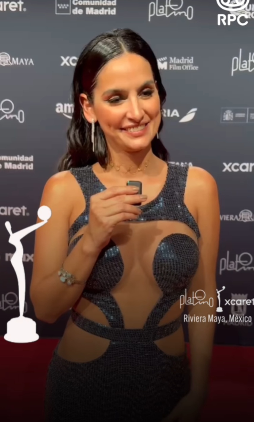 La actriz y productora brasileña en un sofisticado vestido negro con corte minimalista.