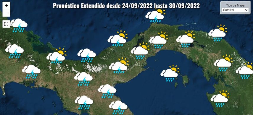 Durante la tarde y noche de este sábado la probabilidad de que las lluvias cubran todo el territorio nacional es considerable y que puedan estar acompañadas con actividad eléctrica. Por lo tanto, se recomienda atender las precauciones emitidas por el Sistema Nacional de Protección Civil (SINAPROC)