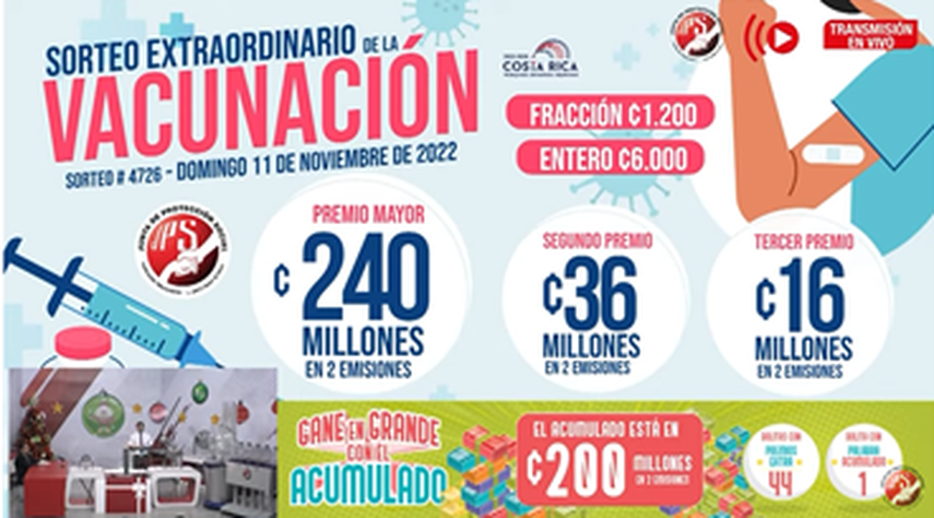 En esta ocasión, el premio mayor en el sorteo, será de 240 millones de colones que equivale a 369.216.00 dólares.