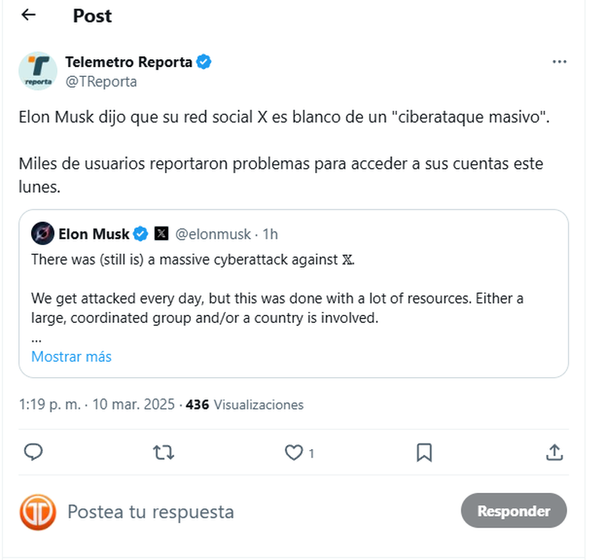 Elon Musk, propietario de la red social, aseguró que la aplicación está siendo blanco de un "ciberataque masivo", aunque no ofreció detalles sobre la magnitud del incidente ni posibles responsables.