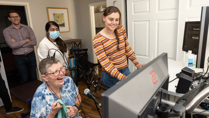 Es decir, el algoritmo asocia las señales a fonemas y así compone palabras, con la ayuda de un modelo de lenguaje. Gracias a este dispositivo tecnológico, Bennet habla a través de una pantalla a un ritmo de más de 60 palabras por minuto.