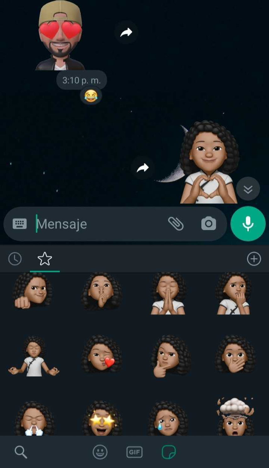 La aplicación de mensajería instantánea de Meta, te ofrece la opción de añadir tu avatar en tus mensajes, presionando el botón de añadir un nuevo stikers del chat de WhatsApp, una vez abierta la ventana de emoji, GIF, verás que tendrás la opción de avatares.