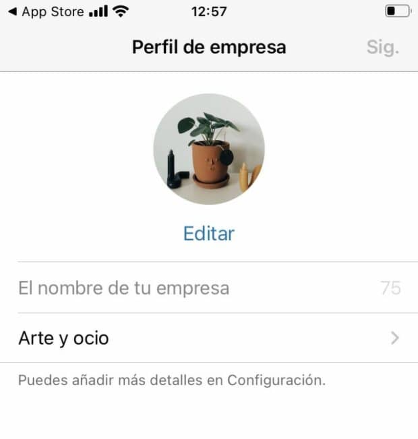 Paso 5: en este punto la aplicación te pedirá que añadas el nombre de la empresa, la categoría de tu servicio y una fotografía para el perfil.