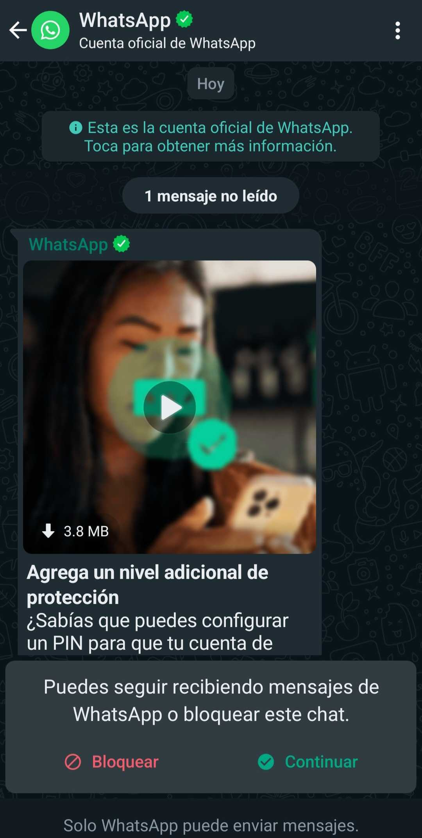 Además, resaltan, que nunca te pedirán información personal. Esta es una características para identificar de dónde provienen los mensajes que te podrían llegar por parte de individuos con malas intenciones.
