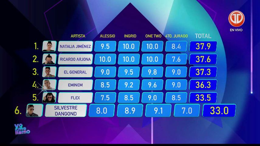 Por último, una vez más, Natalía Jiménez lidera la tabla de puntuación, algunos piensan que no se parece a la verdadera artista pero los números no mienten.
