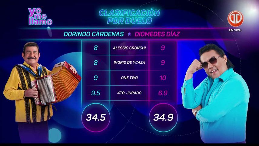 La puntuación de los artistas fue, Rolando Laserie 35.7 y Jhonny Ventura 32.9.